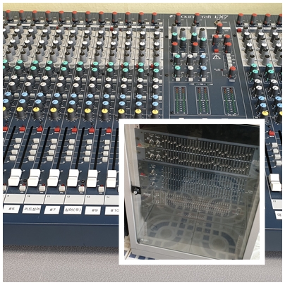 사운드 크래프트 LX7 믹서와 각종 아웃보드들이 보이네요.