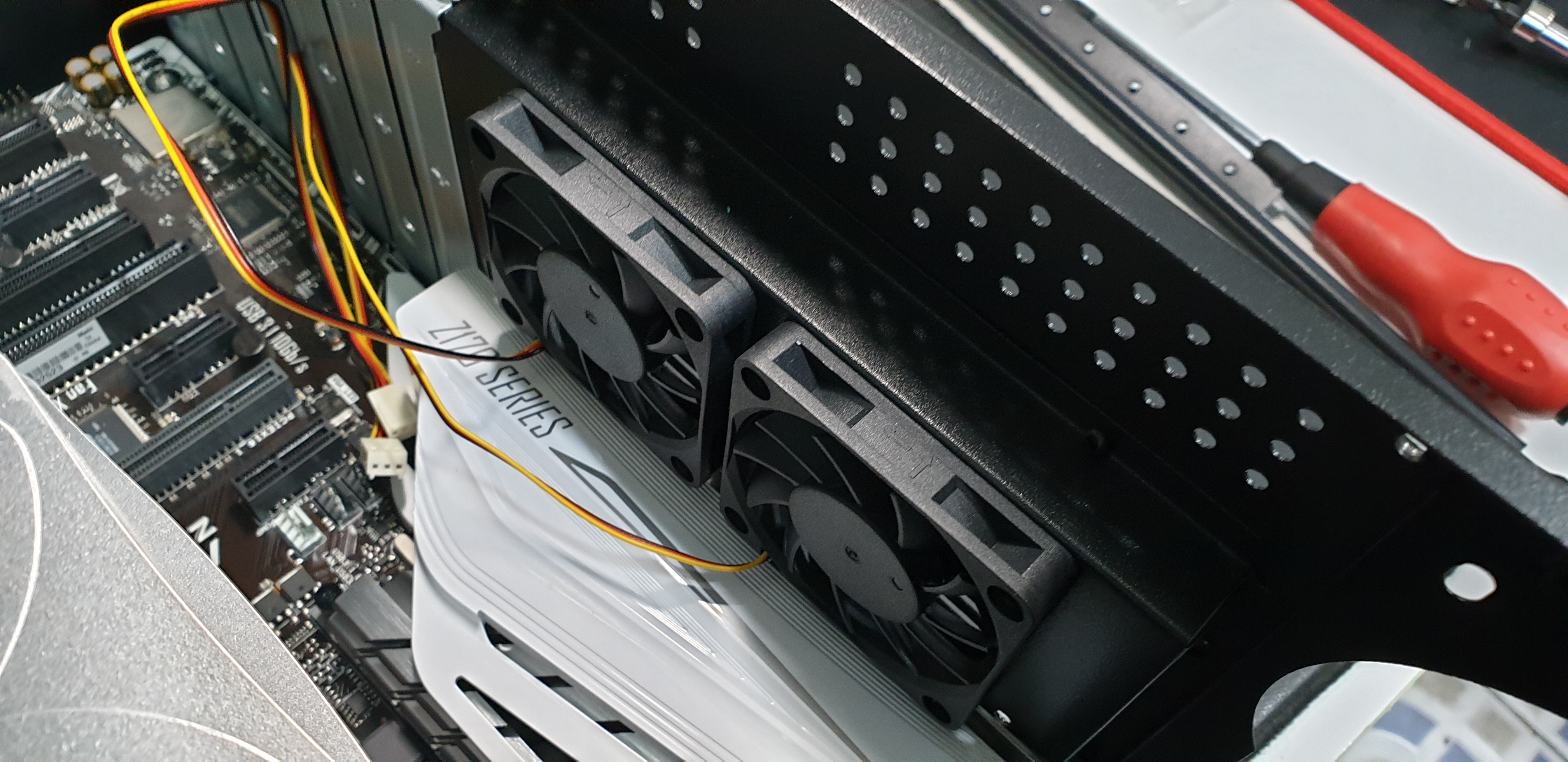 후면에 80mm 소형 팬이 2개나 들어갑니다.