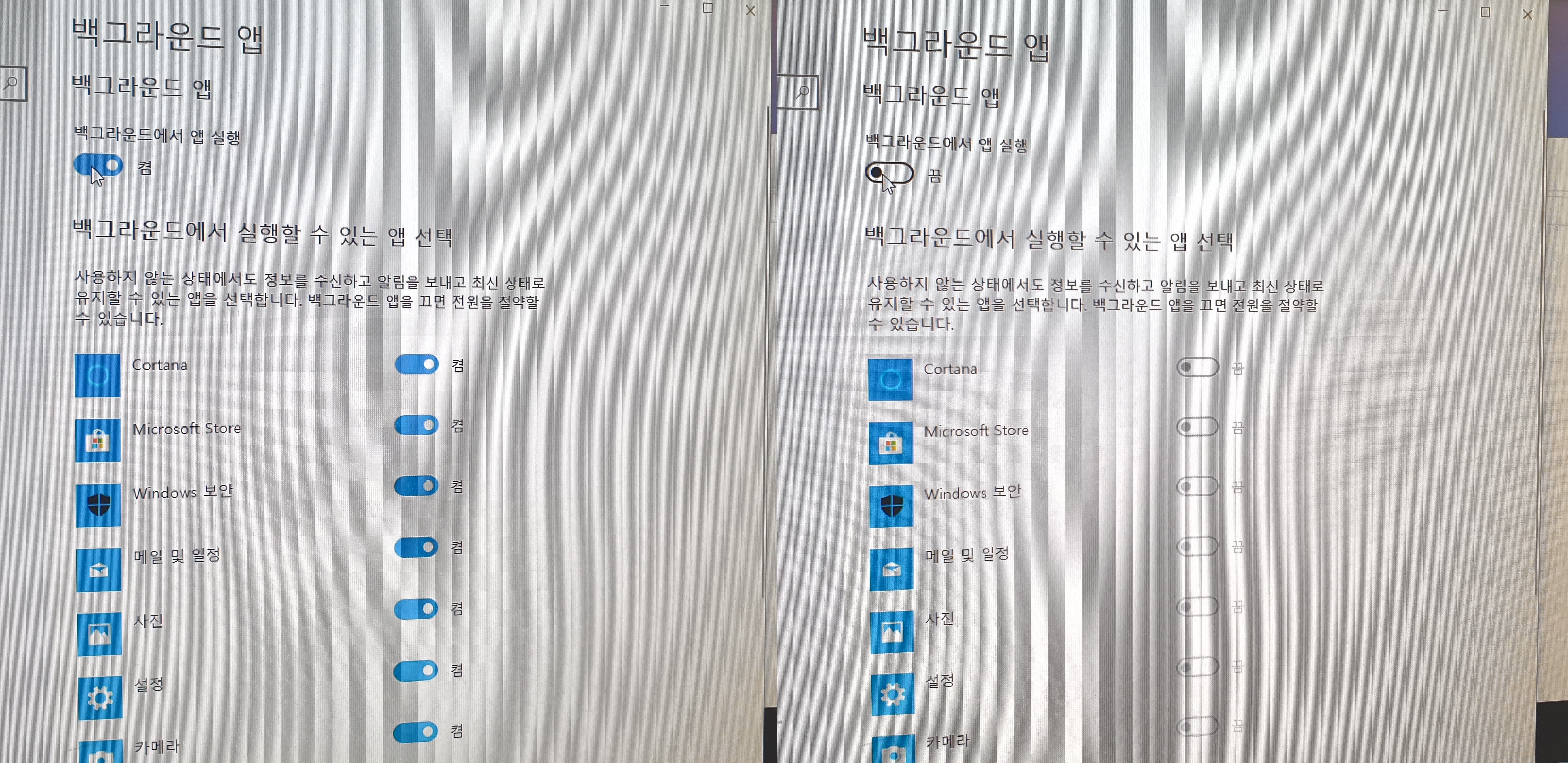 백그라운드에서 계속 작동하며 CPU/RAM자원을 소모하는