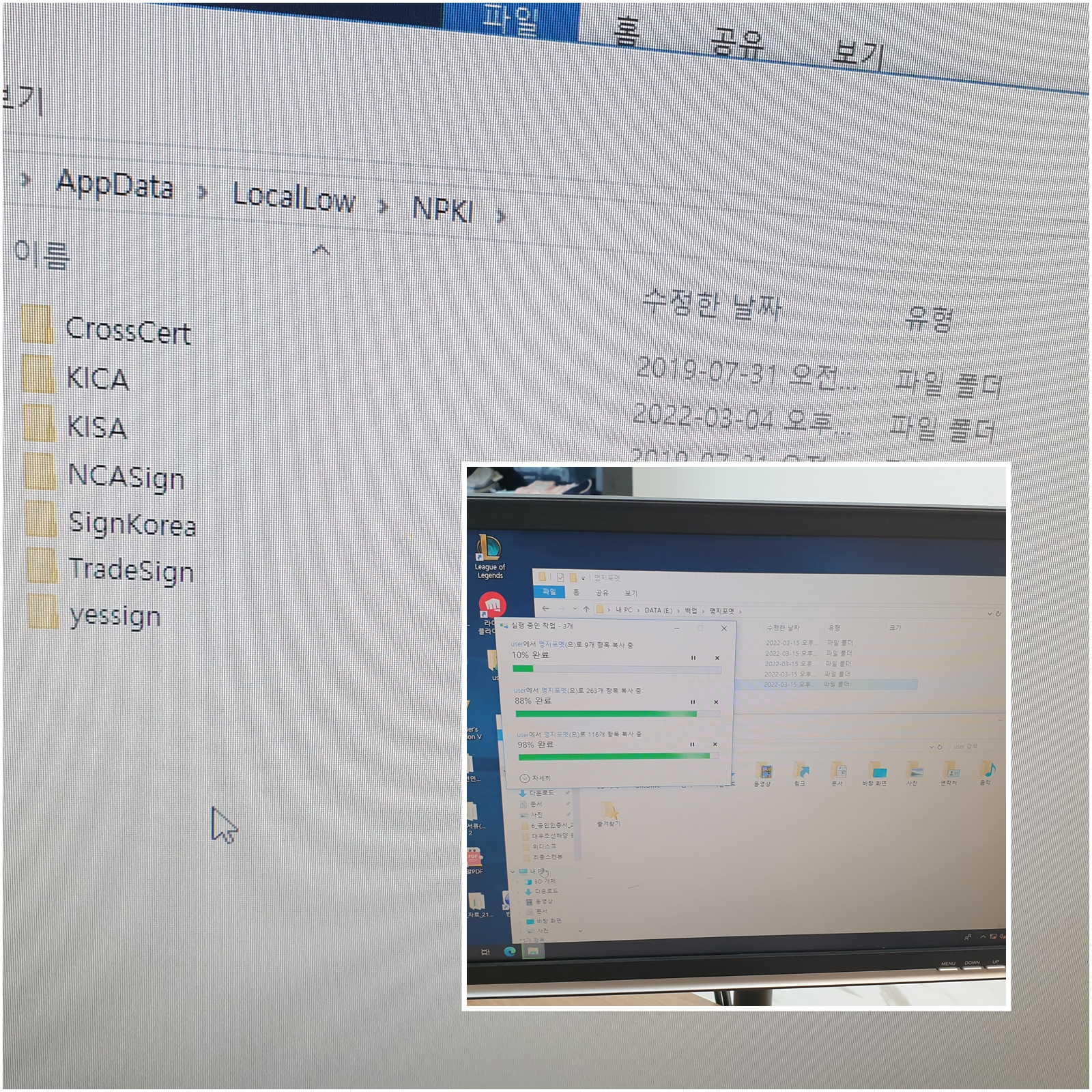 설치 전 PC에 있는 자료를 백업합니다. 바탕화면/다운로드/문서폴더 등 모든 자료와